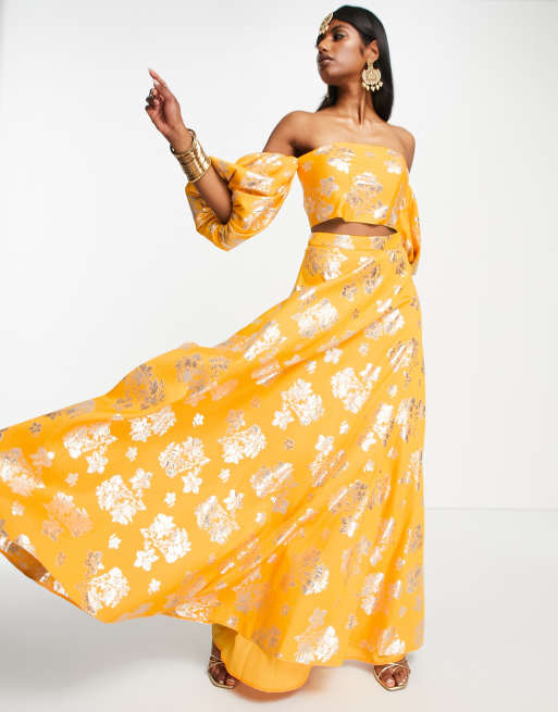 ASOS DESIGN floral jacquard maxi lehenga skirt in apricot (part of a set)