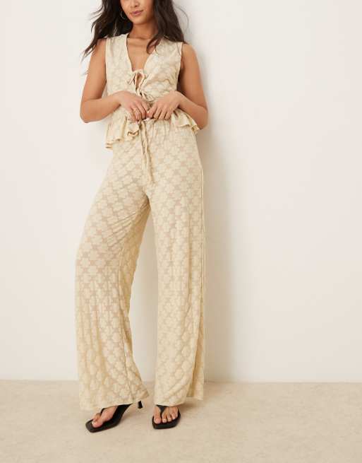 ASOS DESIGN floral lace wide leg pants in almond milk (Part of a set)