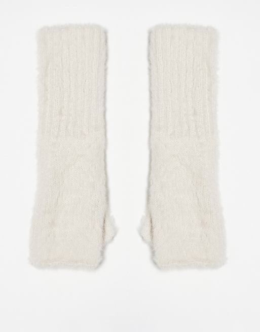 ASOS DESIGN fluffy long sleeve palm warmers in cream