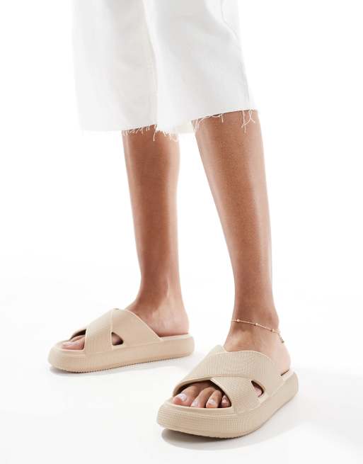 ASOS DESIGN Forever cross-strap chunky sliders in beige