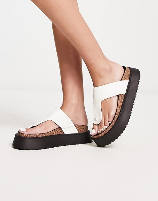 ASOS DESIGN Freefall toe post flat sandals in white