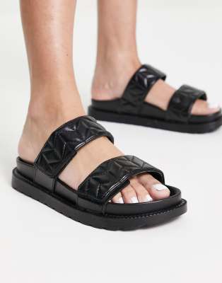 ASOS DESIGN Frequency double strap flat sandals in black