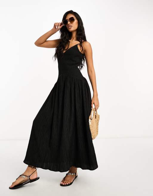 ASOS DESIGN full skirt midi crinkle sundress in black