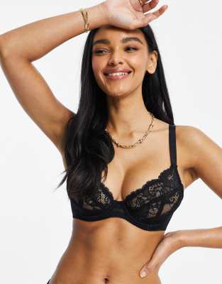 ASOS DESIGN Fuller Bust Arabella demi pad underwire lace bra in black