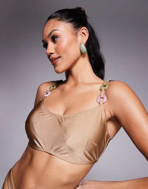 ASOS DESIGN Fuller Bust Tina resin hidden underwire bikini top in brown