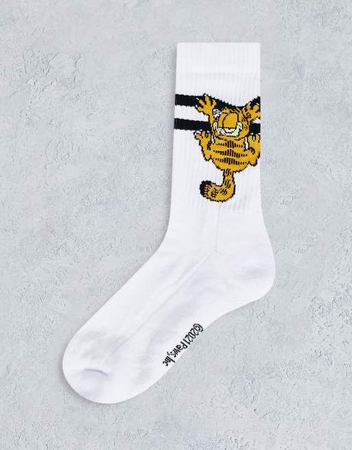 ASOS DESIGN Garfield sports socks in white with black stripe