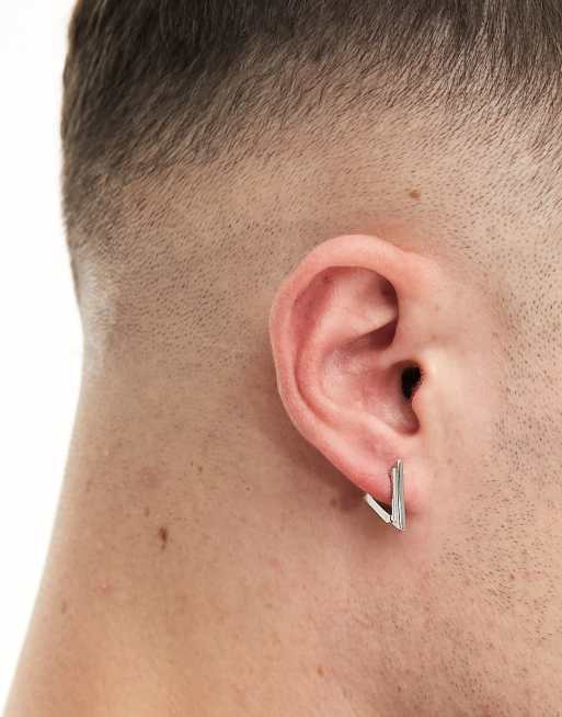 ASOS DESIGN geo stacked hoops in silver tone