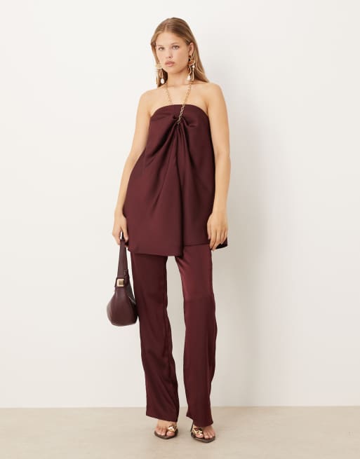 ASOS DESIGN gold chain halter satin top with pants set in plum