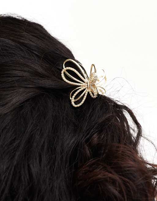 ASOS DESIGN hair claw with faux pearl butterfly design in gold tone