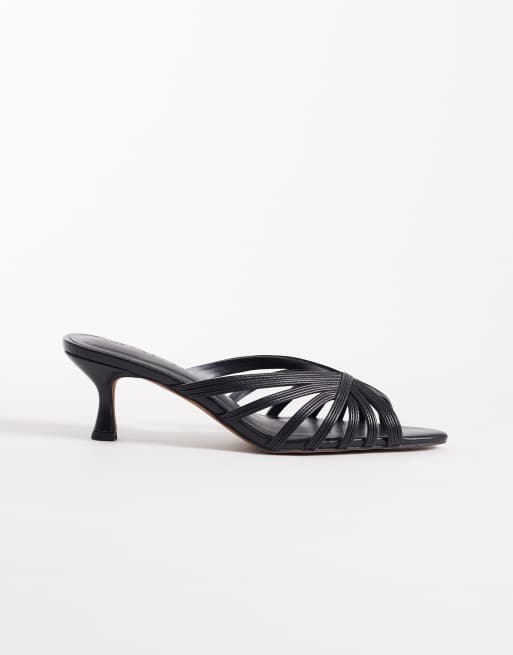 ASOS DESIGN Healing strappy peep toe mid heel mules in black