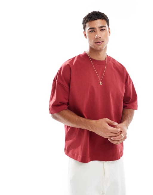 ASOS DESIGN heavyweight oversized boxy drop shoulder t-shirt in red