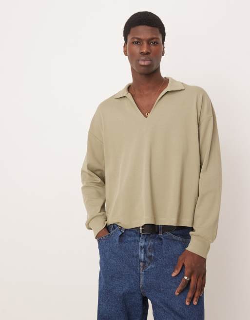 ASOS DESIGN heavyweight oversized boxy long sleeve polo in khaki