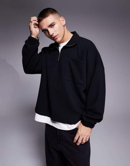 ASOS DESIGN heavyweight oversized dropped shoulder boxy sweatshirt with half zip in black rib