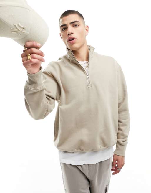 ASOS DESIGN heavyweight oversized half zip sweatshirt in beige
