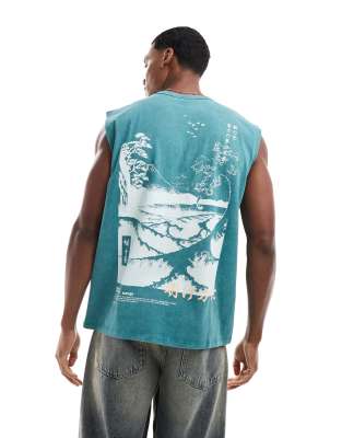 ASOS DESIGN heavyweight oversized singlet in washed blue with souvenir back print