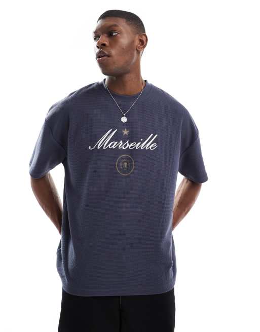 ASOS DESIGN heavyweight oversized t-shirt in waffle texture with city graphic in charcoal