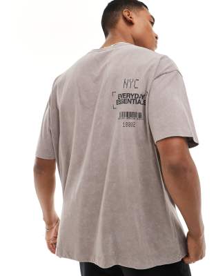 ASOS DESIGN heavyweight oversized t-shirt in washed brown with NYC text print