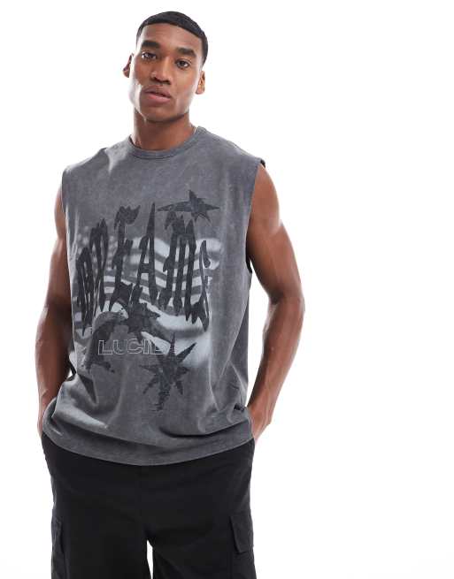 ASOS DESIGN heavyweight oversized tank in washed black with grunge front print