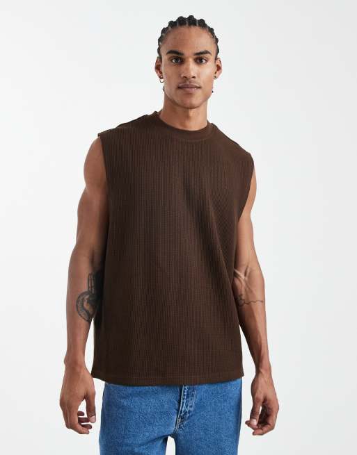 ASOS DESIGN heavyweight oversized tank top in brown waffle