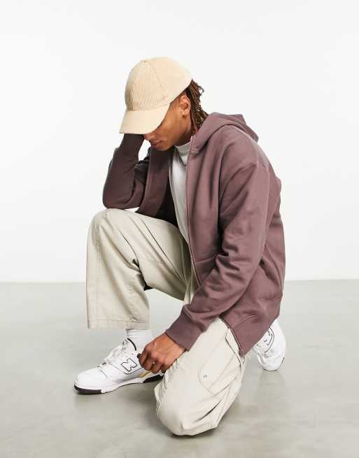 ASOS DESIGN heavyweight oversized zip through hoodie in washed brown