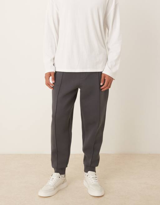 ASOS DESIGN heavyweight tapered trackies in scuba-style fabric with pin tucks in charcoal