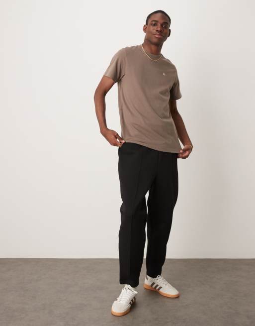 ASOS DESIGN heavyweight tapered trackies with pleat detail in scuba-style fabric in black