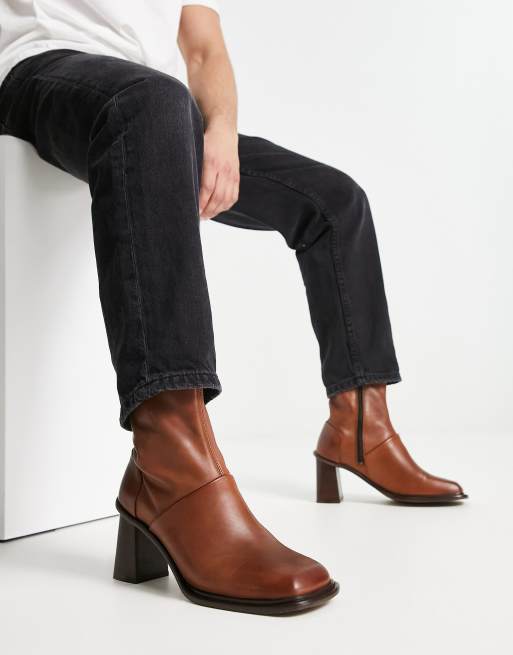 ASOS DESIGN heeled chelsea boots in tan leather with natural sole