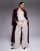 ASOS DESIGN herringbone brushed bandeau corset top & wide leg pants set in cream