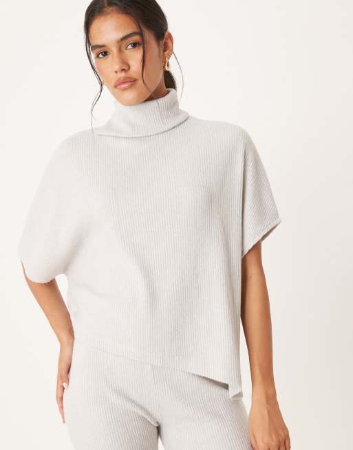 ASOS DESIGN high neck drape brushed rib top in grey (part of a set)
