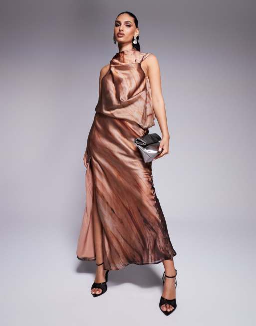 ASOS DESIGN high neck drape maxi dress in abstract print