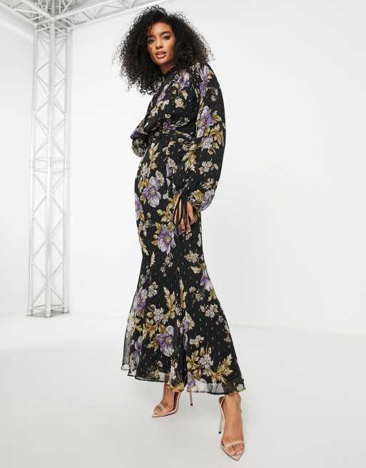 ASOS DESIGN high neck drape maxi dress in floral fil coupe with belt