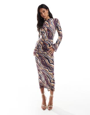 ASOS DESIGN high neck drapey maxi dress with open back in abstract swirl print