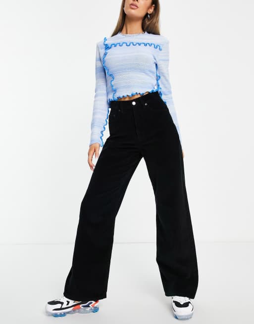 ASOS DESIGN high rise relaxed dad pants in black cord