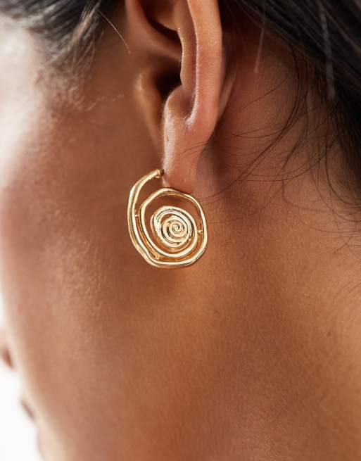 ASOS DESIGN hoop earrings with swirl detail in brushed gold tone