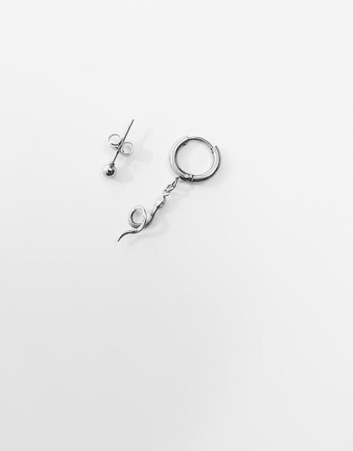 ASOS DESIGN hoop with snake and stud earring in silver tone