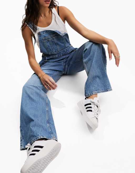 ASOS DESIGN Hourglass denim dungarees in mid blue