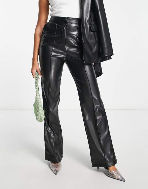 ASOS DESIGN Hourglass leather look straight pants in black