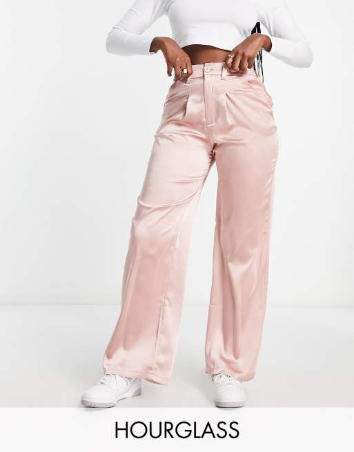 ASOS DESIGN Hourglass satin dad pants in pink