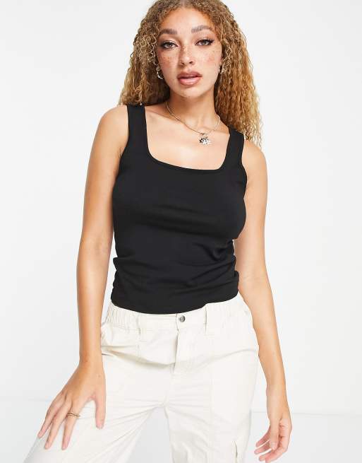 ASOS DESIGN Hourglass singlet with scoop front and back in black