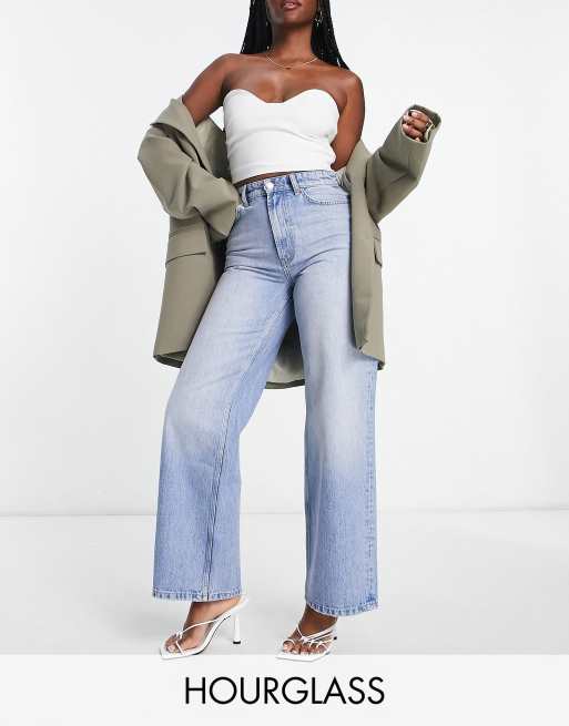ASOS DESIGN Hourglass wide leg dad jeans in mid blue