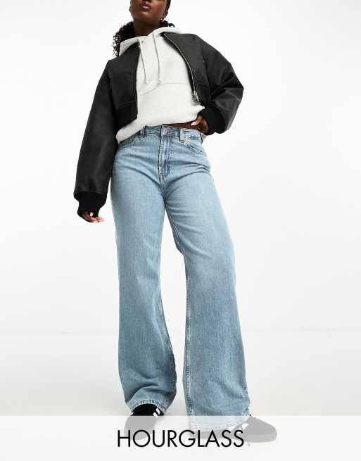 ASOS DESIGN Hourglass wide leg dad jeans in mid blue