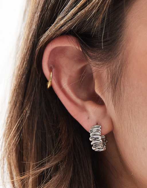 ASOS DESIGN huggie hoop earrings in wiggle design in silver tone