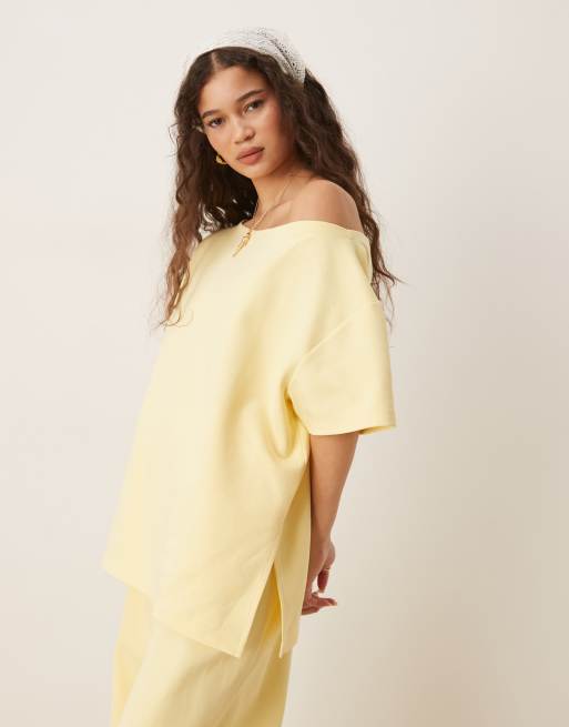 ASOS DESIGN interlock off shoulder top in yellow (part of a set)