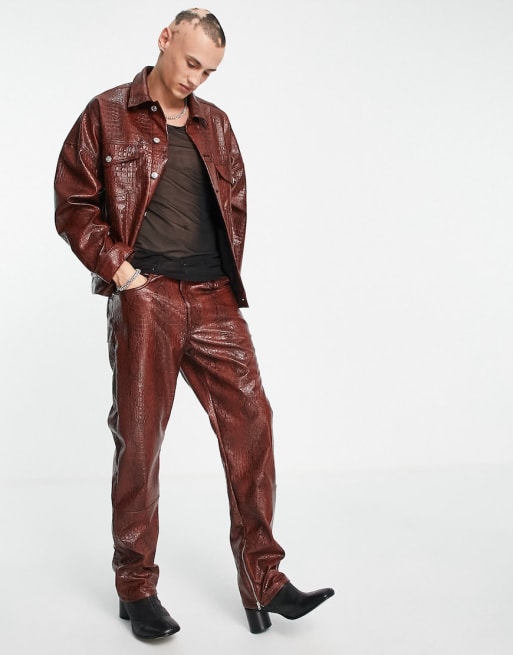 ASOS DESIGN jacket and jeans set in red snake print leather look