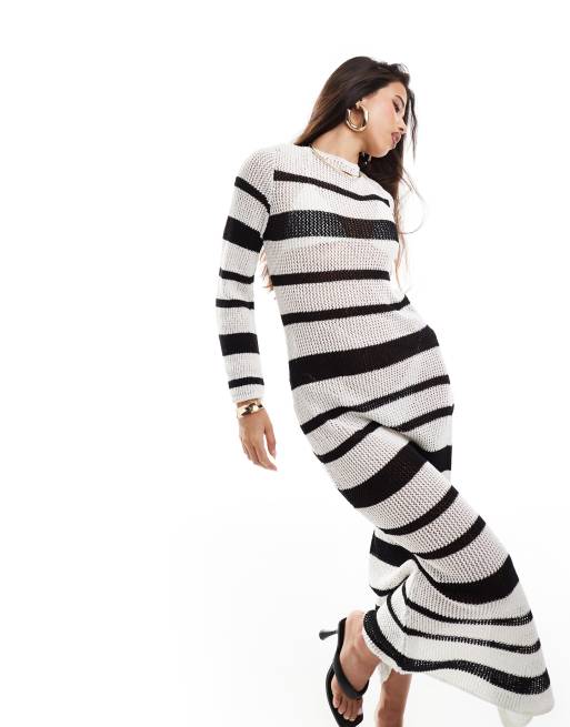 ASOS DESIGN knit stripe angel sleeve maxi dress with low back detail in black