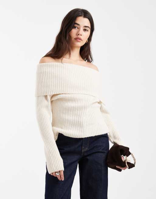 ASOS DESIGN knitted bardot jumper in ecru