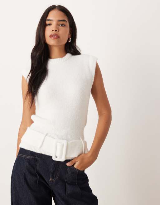 ASOS DESIGN knitted belted top with wool in ecru