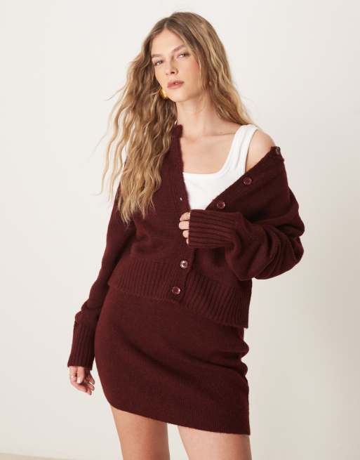 ASOS DESIGN knitted cardigan in burgundy (part of a set)