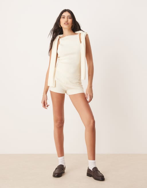 ASOS DESIGN knitted compact cami top & structured shorts set in buttermilk