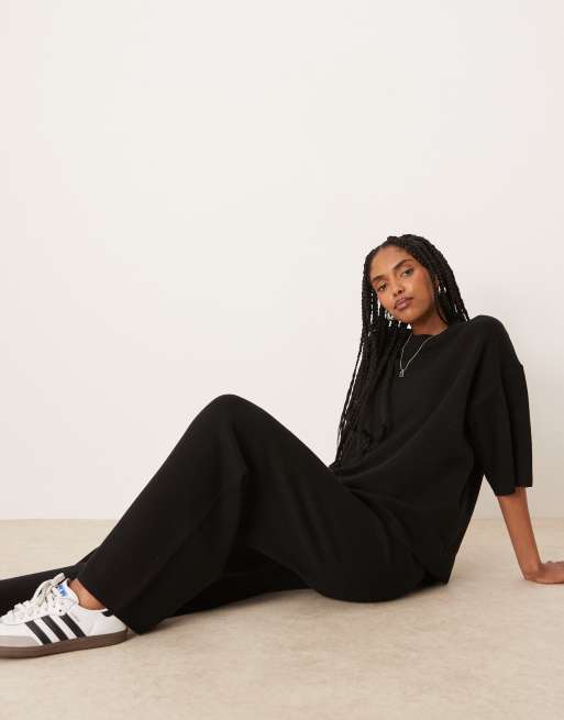 ASOS DESIGN knitted compact structured t-shirt & pants set in black